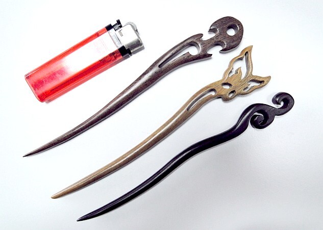 - 【未使用】木製(黒檀など)かんざし3本組(18cm前後)【送料定形外180円】