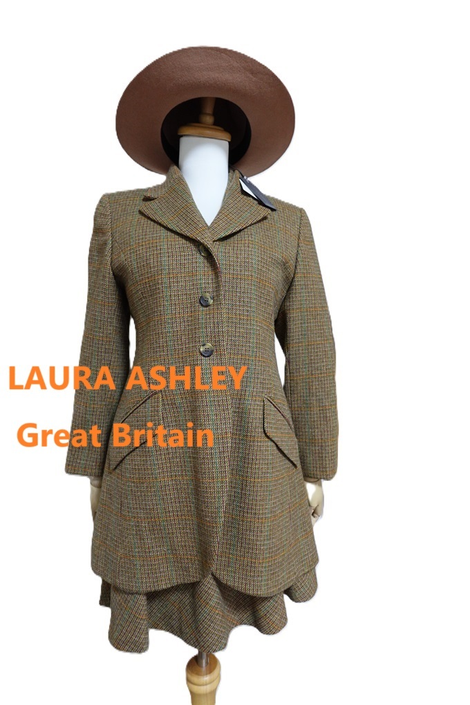 - 新品同様☆ LAURA ASHLEY アイルランド製 ツィードスカートスーツ S程度 ローラアシュレイ