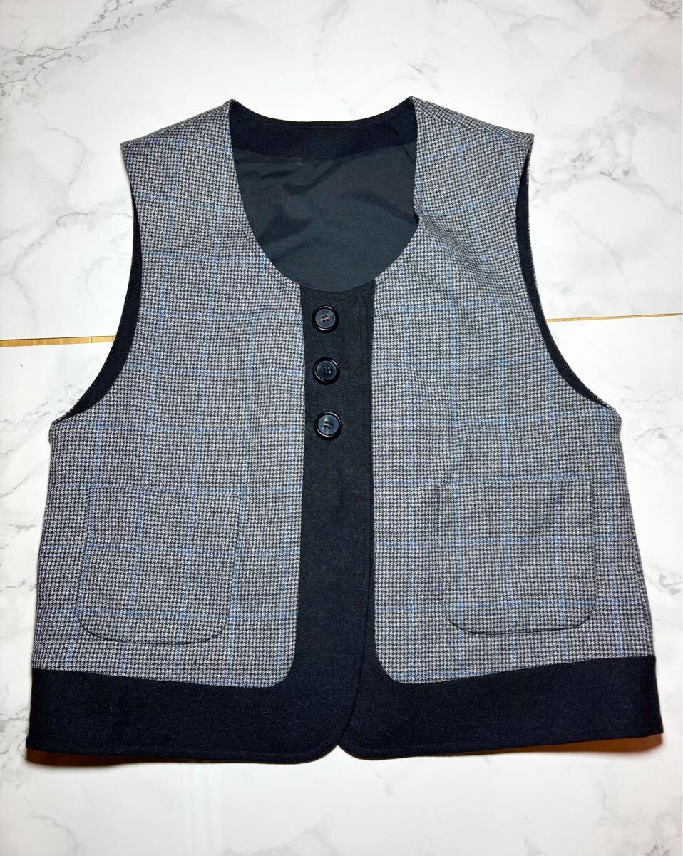 - イタリア高級ウールグレーとブラックのチェック柄ベスト Sサイズ