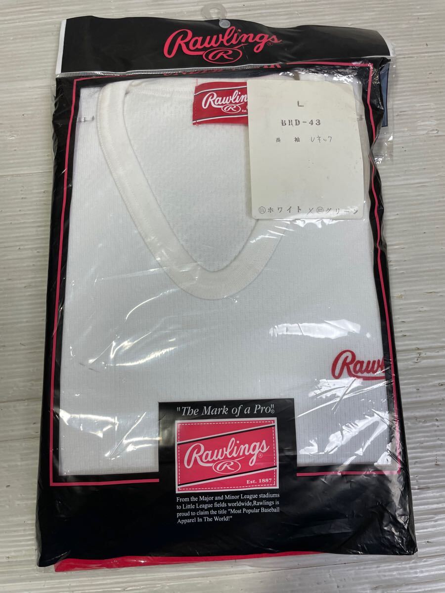 > ◯D27 未使用 ローリングス アンダーウェア 長袖 Uネック Lサイズ 胸囲93-99 身長172-178 グリーン×ホワイト 訳あり