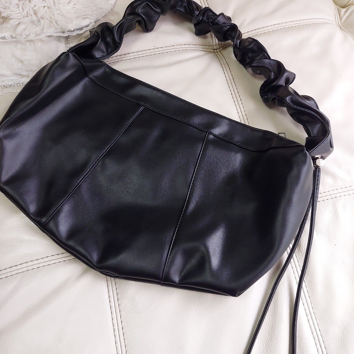 - クシュクシュバッグ 未使用 ショルダーバッグ 軽量 黒 ファスナー シャーリングバッグ くしゅくしゅバッグ オシャレ バッグ