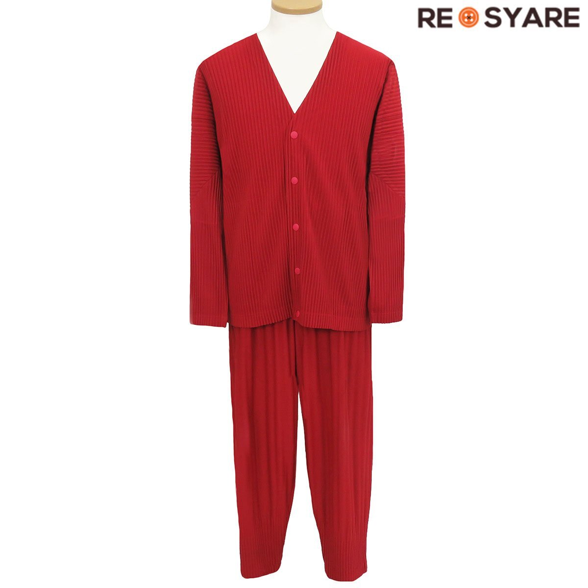 > 良品 HOMME PLISSE ISSEY MIYAKE オムプリッセ イッセイミヤケ プリーツ ノーカラー ジャケット カーディガン パンツ セットアップ 47050