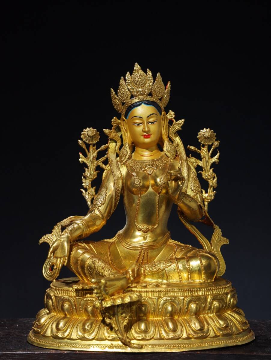 - 旧蔵 清 銅塗金画彩【緑度母】仏像 奉納されていた 供養品 銅製 極細工 古美術 古美味 212-13