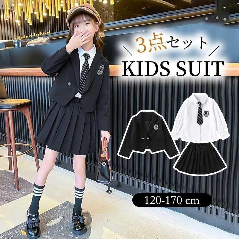 - 卒業式 スーツ 女の子 3点セット(ジャケット スカート シャツ) 卒服 小学校卒業式スーツ 子供服 子供スーツ☆120~170サイズ選択/1点