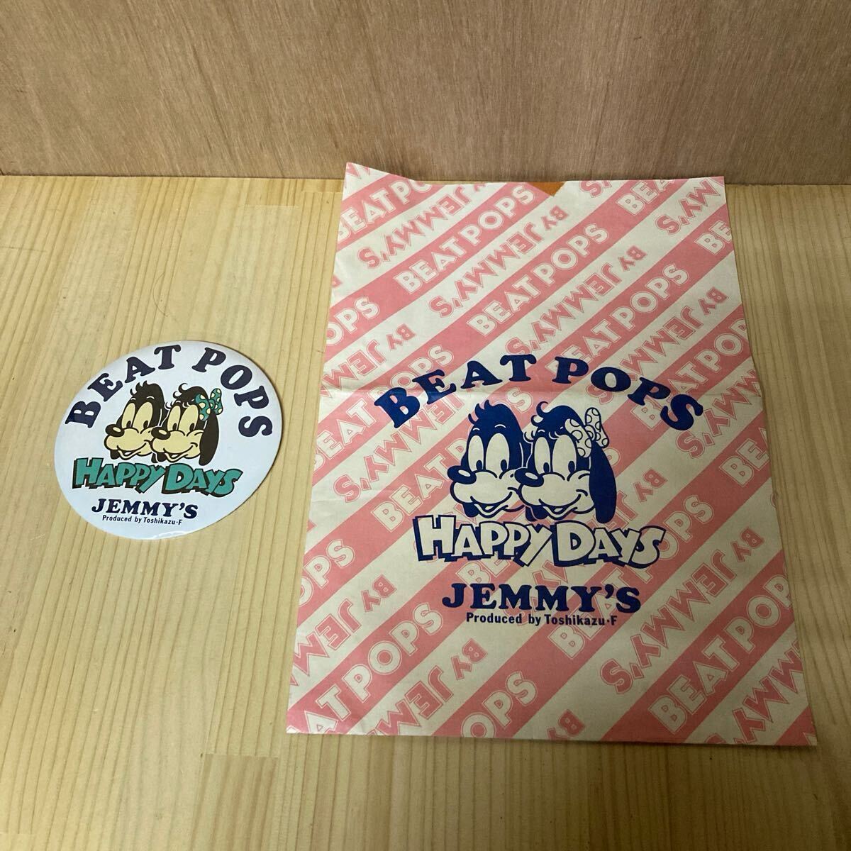 - 当時物 JEMMY’S 特大缶バッジ ショップ紙袋 BEAT POPS 布川敏和 ふっくん タレントショップ 原宿 昭和レトロ