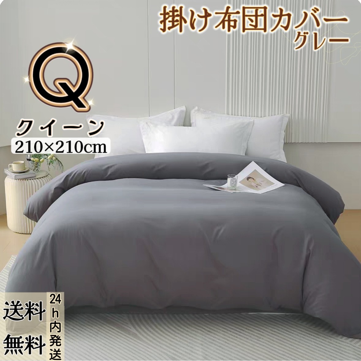 - 布団カバー 掛け布団カバー 肌触りの良い 寝具カバー 冬夏兼用 通気 速乾 柔らかい 丸洗い可能 (クイーン・210*210CM・グレー)