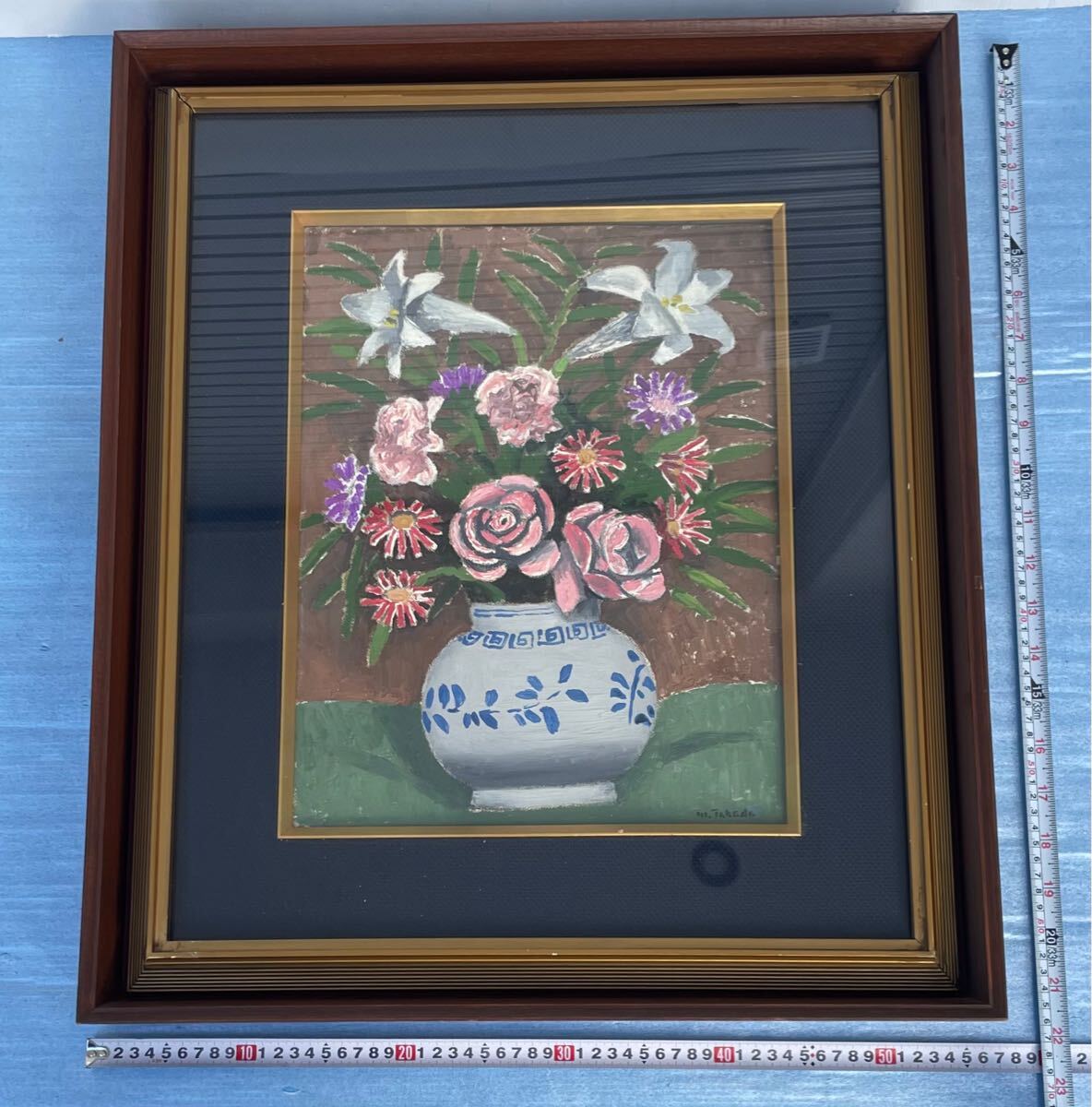 - ◆高田誠◆真作保証◆一水会◆「花」傑作◆油彩 額装 署名