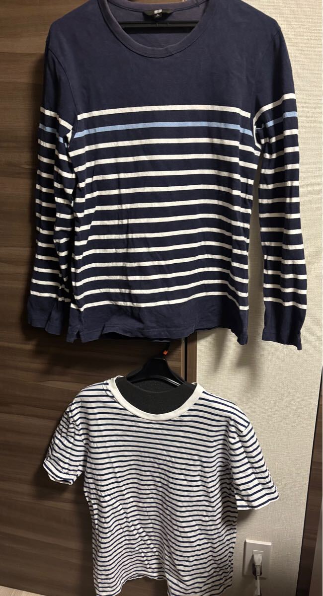 > ユニクロUNIQLO Tシャツ Mサイズ 2点セット 長袖半袖 ストライプ メンズ ボーダー