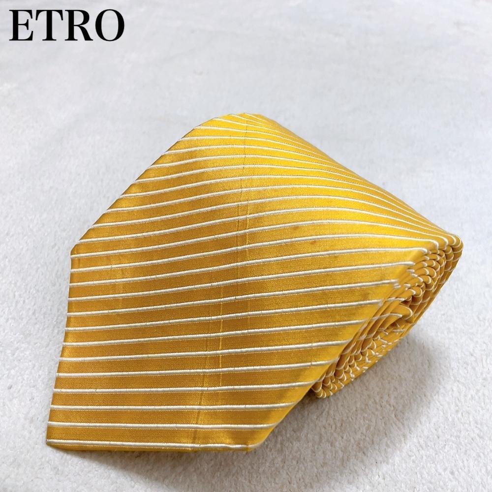 - ETRO エトロ ネクタイ シルク ストライプ 高級感 エレガント 上品 ゴージャス ワンポイントロゴ ビジネス スーツ フォーマル イエロー V24