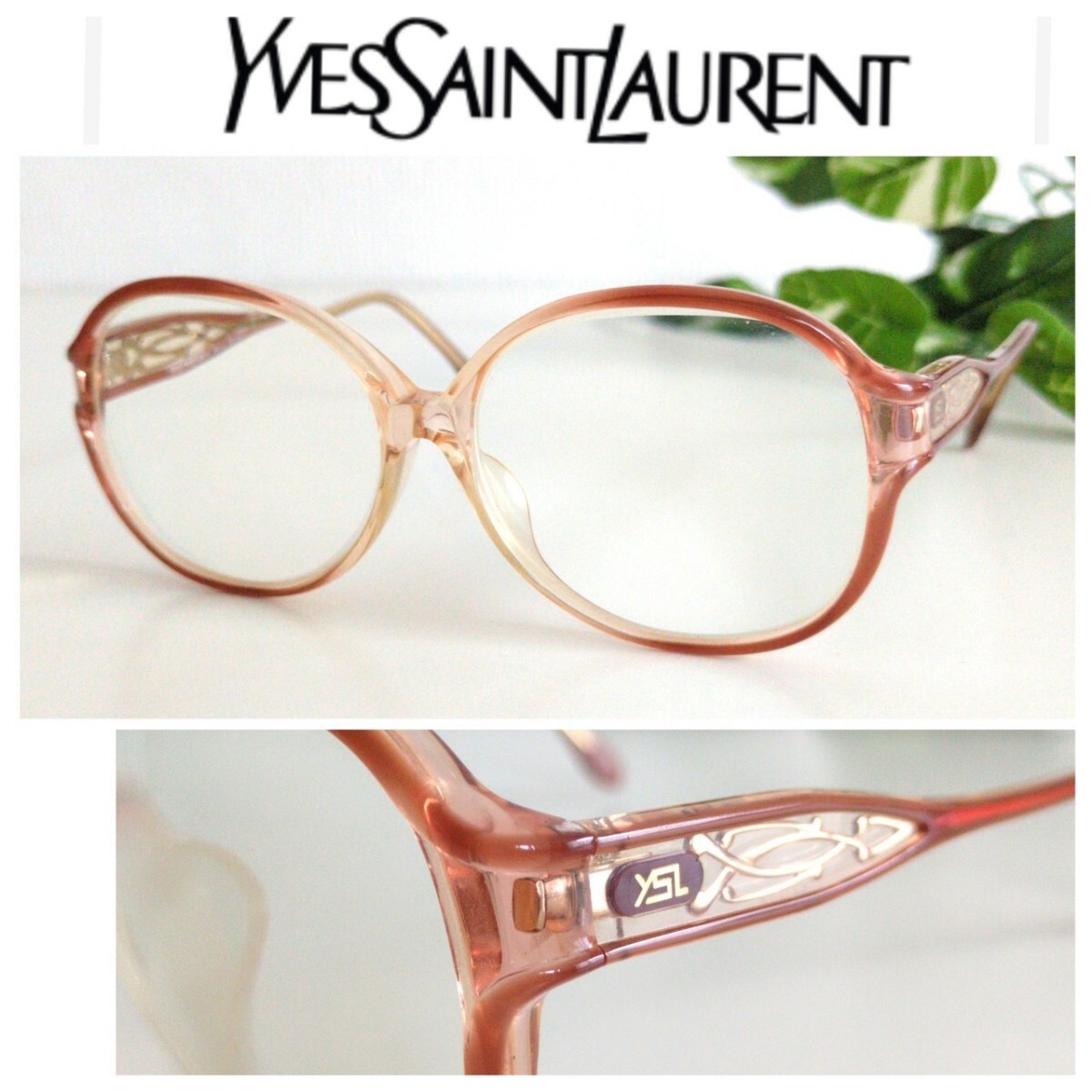 > 美品 イヴサンローラン オールド ヴィンテージ YSL メガネ 眼鏡フレーム サングラス ピンク ベージュ ブラウン 希少 レディース メンズ