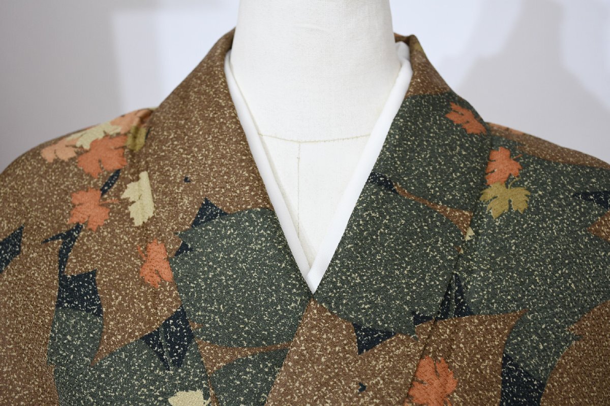 - 小紋 着物 袷 葉 大小 洗える着物 身丈159cm 裄丈66cm ★ kb-6379 桜庭呉服店