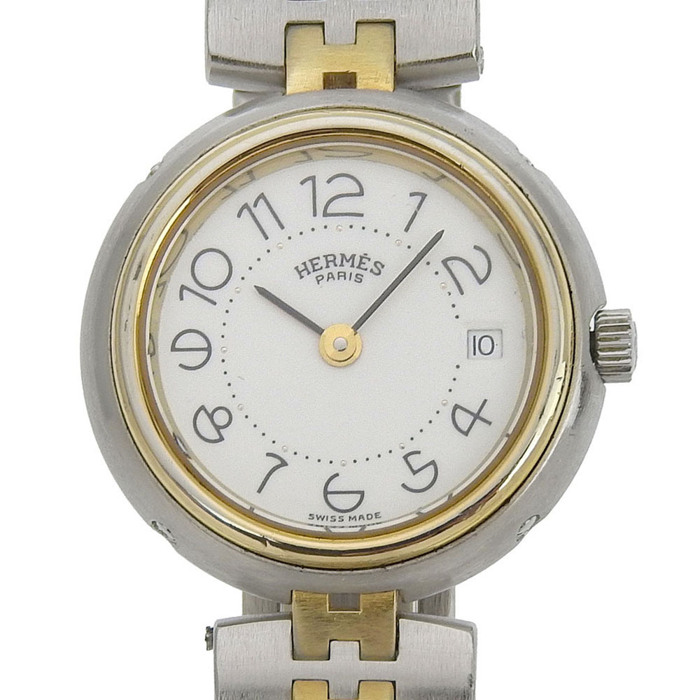 - HERMES エルメス プロフィール デイト 腕時計 SS×金メッキ クオーツ アナログ表示 レディース 白文字盤【I200224006】中古