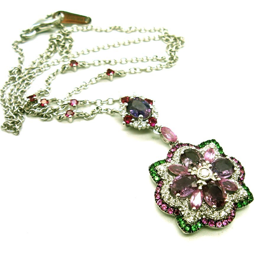 - PN583:K18WG カラーサファイア ルビー グリーンガーネット ダイヤ プチネックレス
