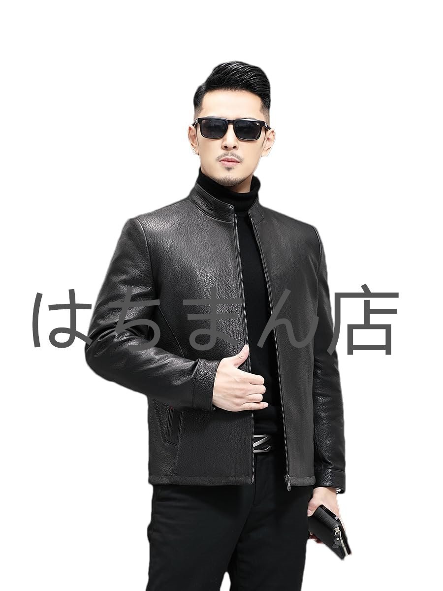 > レザージャケット メンズ スタンドカラー ダウンライナー付き シングルライダース 山羊革 革ジャン 皮ジャン 本革 本皮 L-5XL