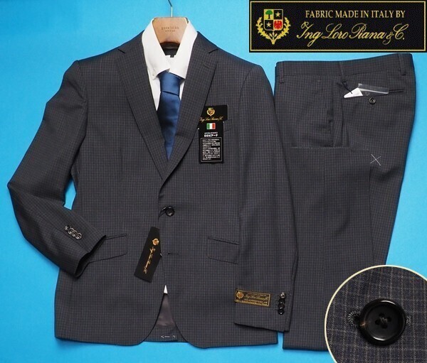 - 新品12.9万円 大手百貨店扱い 春夏『ロロピアーナ ZELANDER DREAM 伊製生地』ウール100% チェック柄 スーツA7紺灰(H) 1504461