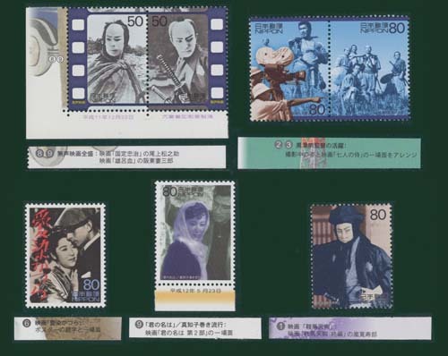 > 昭和映画(無声映画あり)の記念切手☆愛染かつら/君の名は/七人の侍/鞍馬天狗【未使用◆7種セット】大蔵省印刷局製造つき
