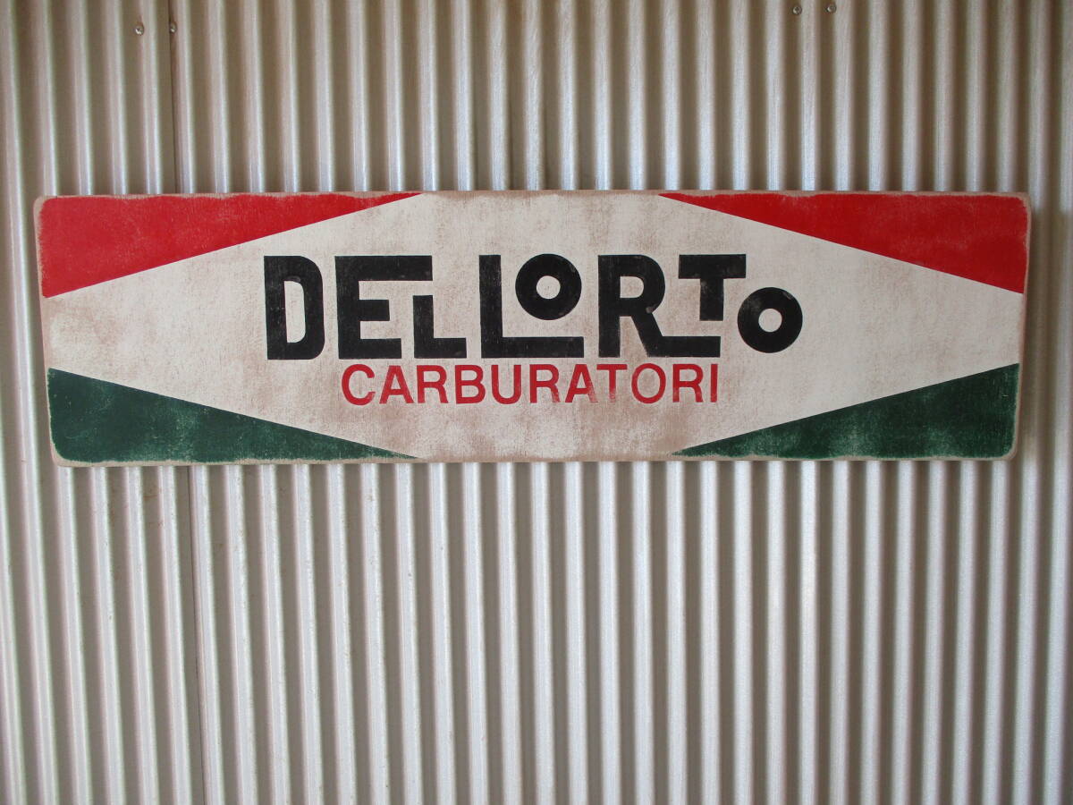 - インテリア木製看板 DELLORTO検)キャブレターガレージカスタム企業販促SOLEXITALYFIATDUCATI60s70s80s