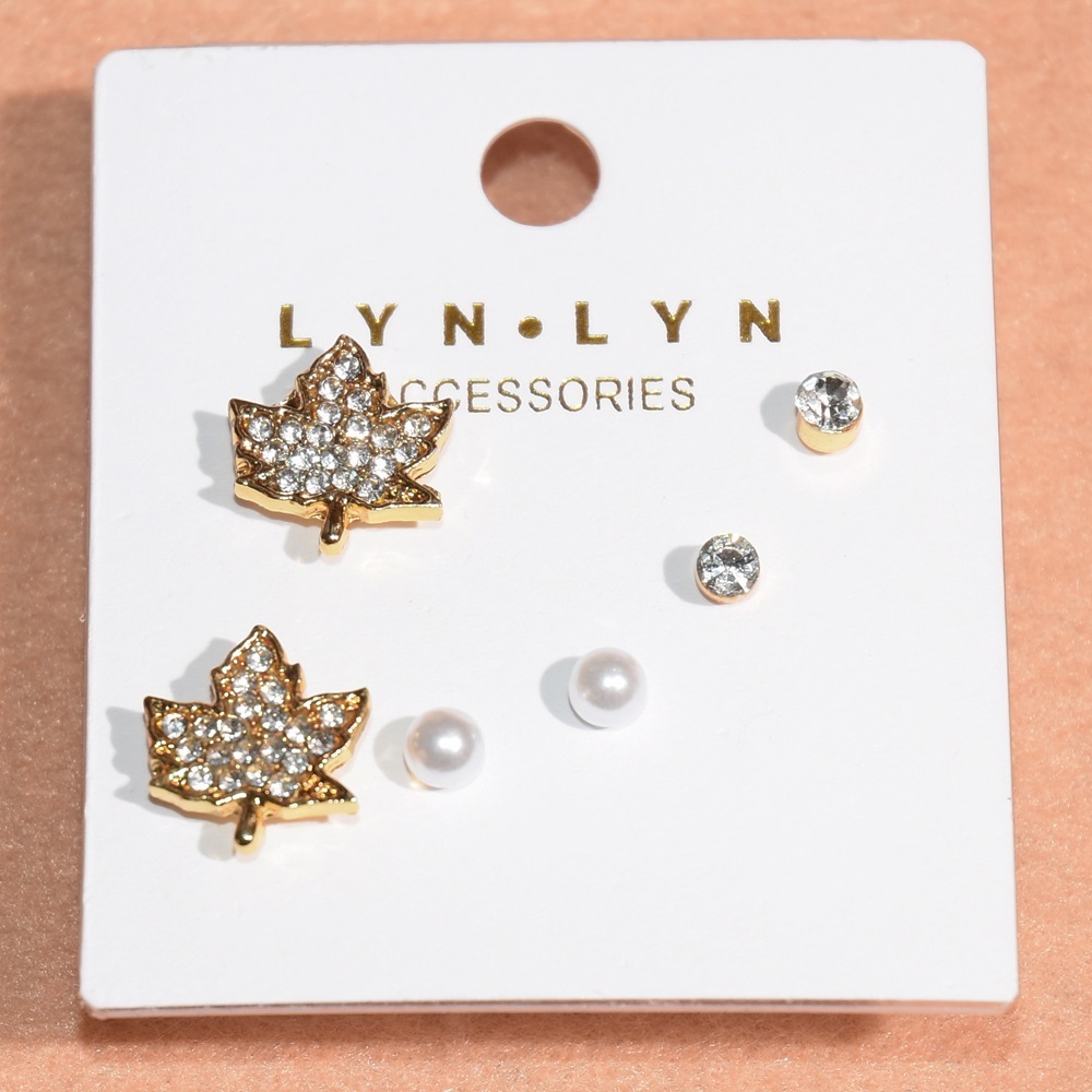 - ★ピアス3点セット★メイプルリーフ★パールビーズ★クリアストーン★スタッドピアス★新品★B01