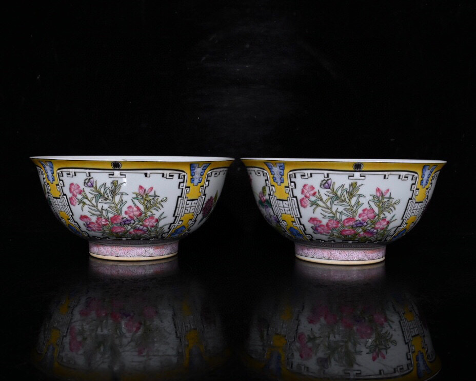 - 【超珍館蔵】清 雍正年製款 古陶瓷品 粉彩 開片 花卉紋 供碗一對 置物 古賞物 古美術品 稀少珍蔵品