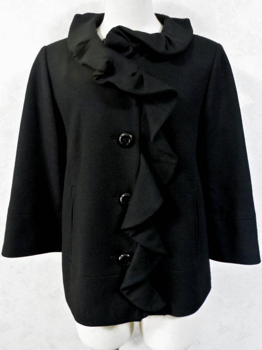- 即決!!AUSTIN REEDオースティンリード ウール ブラックカラー フリルジャケット 38 日本製