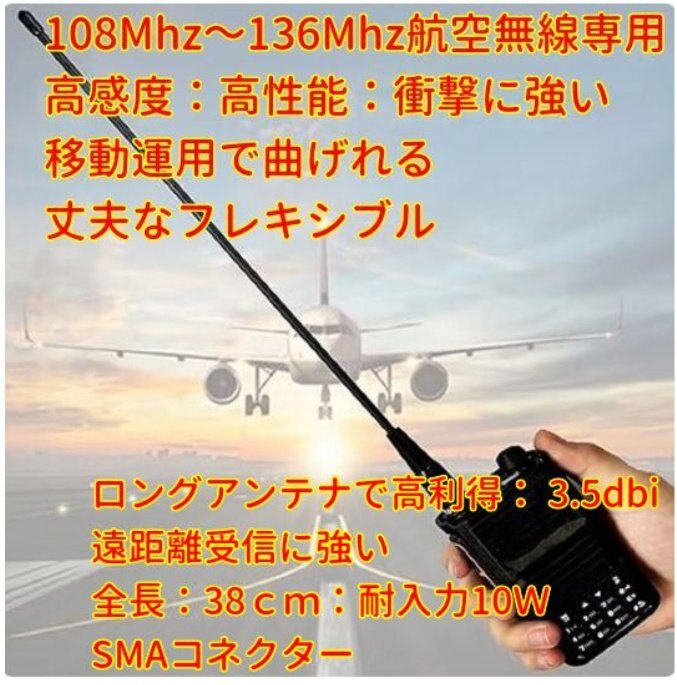 > 108Mhz~136Mhz 航空無線 周波数専用 ハンディ用フレキシブル ロングアンテナ SMA-J型 新品/ハンディ無線機に 過激飛びMAX