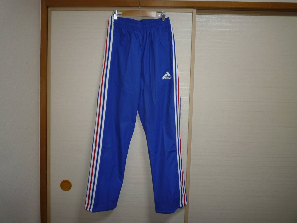 > アディダス ナイロンパンツ青×赤白青ライン Mサイズ トリコロール柄 日本製