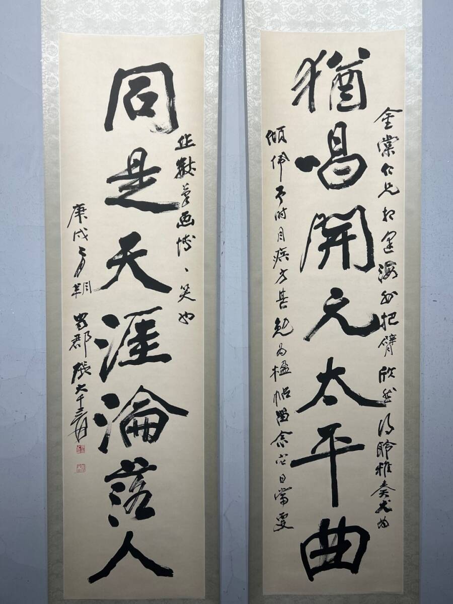 - 中国書画 掛け軸 中国・近時代 張大千「書道対聯」紙本立軸 書道巻物 真筆逸品 肉筆保証 唐物 古画 LOT-N4823