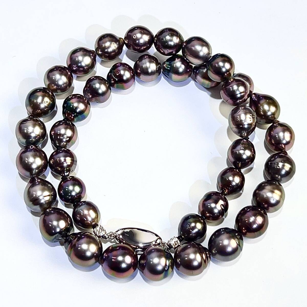 - SV 黒蝶 タヒチ ブラック パール ネックレス 天然 本真珠 鑑別書 43.5cm BP8.7-10.8mm 57g レディース アクセサリー 未使用品