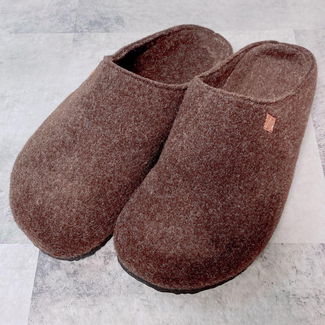 - 23.5㎝ スリッパ ルームシューズ スリッポン ブラウン フェルト 冬 冷え性