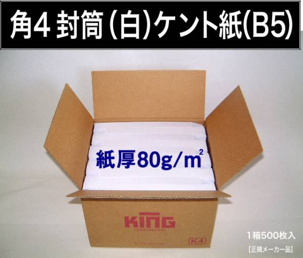 > 角4封筒《紙厚80g/m2 B5 白封筒 ケント紙 角形4号》1000枚 ホワイト 角型4号 B5サイズ対応 無地封筒 キングコーポレーション
