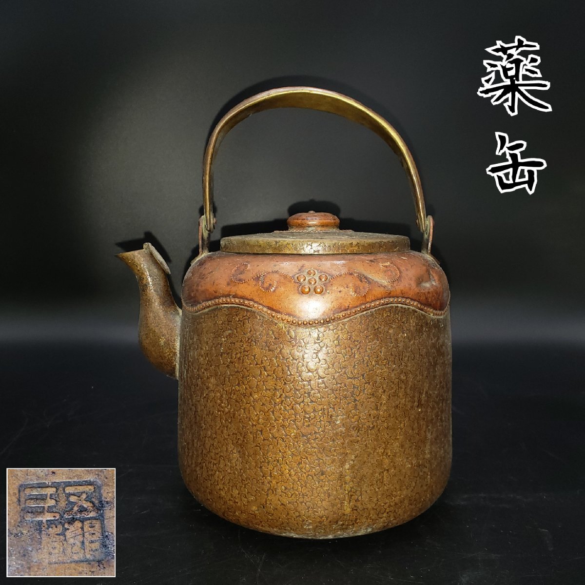 > 薬缶 やかん 金屋五郎三郎? 五郎三郎 湯沸 水差し 水注 口蓋付 銅器 銅製 煎茶道具 茶道具 在銘 古道具 梅【80s3092】