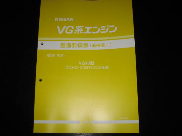 VG系 エンジン整備要領書(追補版Ⅰ)昭和61年2月。VG30型DOHC・EGI(ECCS)仕様
