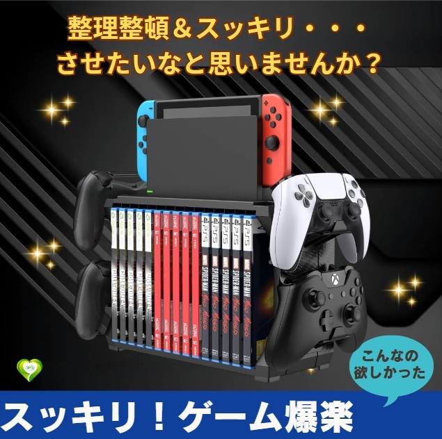 > 【スッキリ!ゲーム爆楽】Switch 多機能収納スタンド ラック コントローラー 大容量 組立簡単 ゲームソフト SW4 利便性 スッリキ