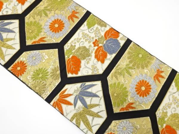 - ys7247543; 宗sou 幾何学に桐・菊・笹模様織り出し袋帯(材料)【アンティーク】【着】