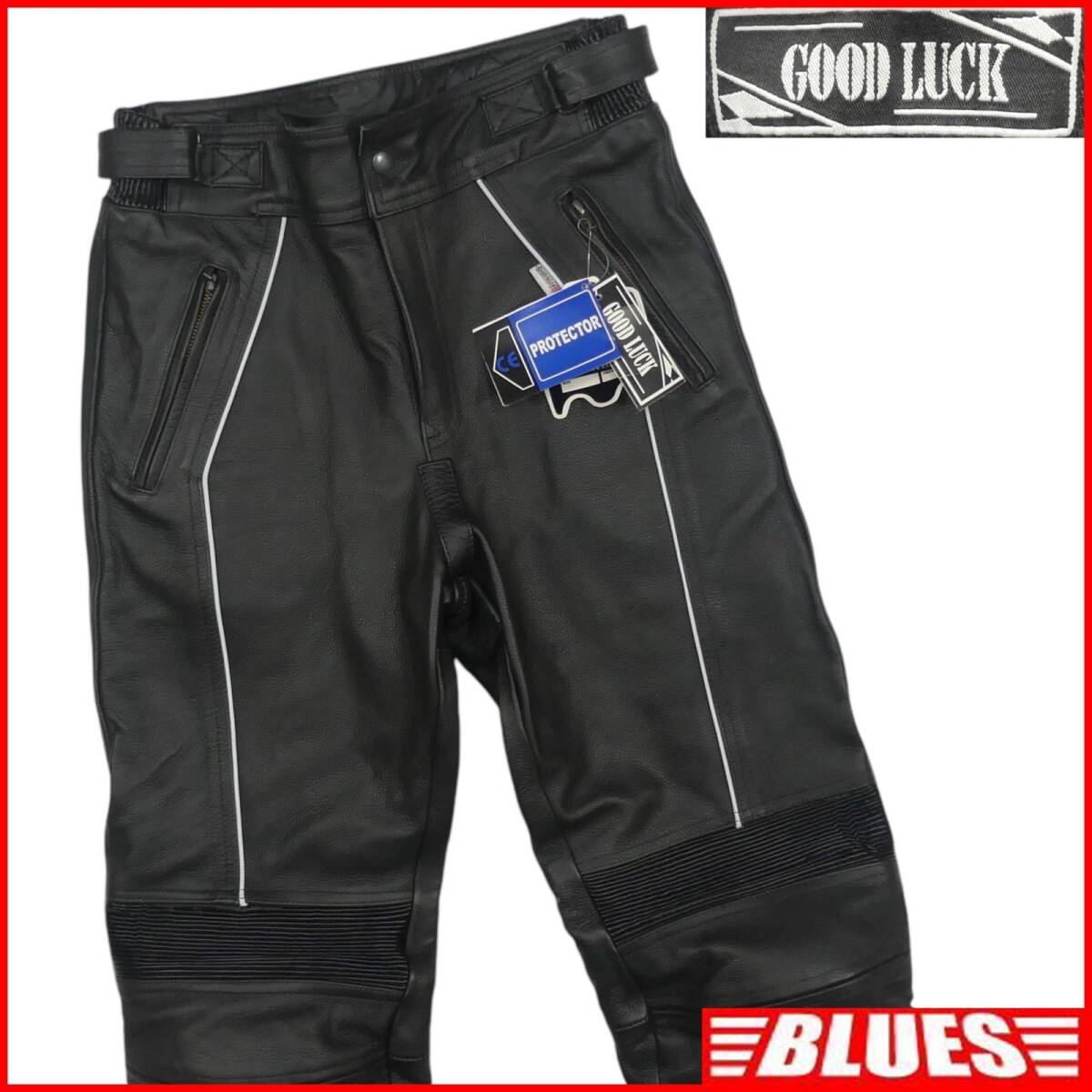 - 即決★GOOD LUCK★W30 レザーパンツ グッドラック メンズ 黒 メッシュ 本革 ライダースパンツ 本皮 タグ付き ハードパッド ライディング