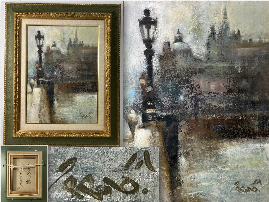 - 【真作】「三宅輝夫 プラハの橋」 自然 風景画 油彩 額装 絵画 美術品 骨董 飾物 アンティーク インテリア 長崎買取