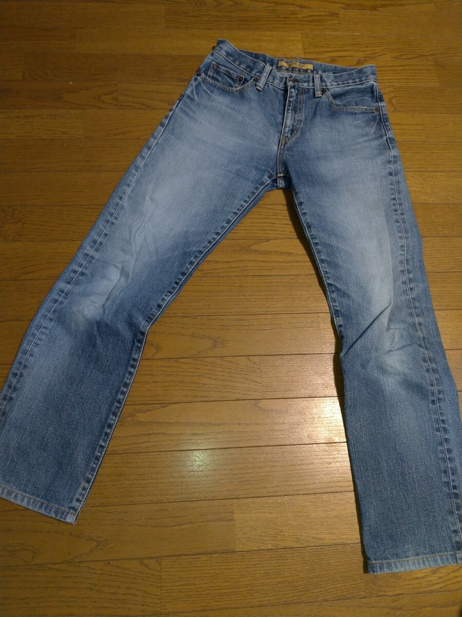 > 【UNIQLO】ユニクロ オリジナルベーシック デニムパンツ レギュラーフィット ストレート メンズ サイズW29 ヴィンテージ加工 革パッチ