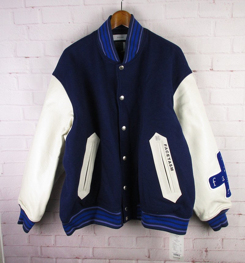 - LFJ25979 FACETASM ファセッタズム STAY GOLD STADIUM JACKET 袖革 スタジャン MKS-JK-M04 ミッドナイトブルー 4 未使用