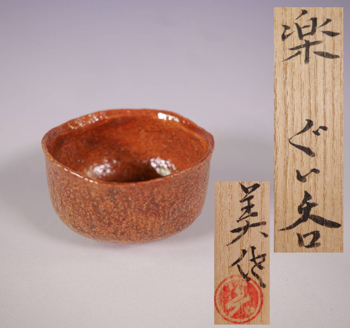 - 直木美佐 楽 ぐい呑 共箱 茶道具 酒器 女性陶芸家 父:直木友次良 叔父:江川拙斎