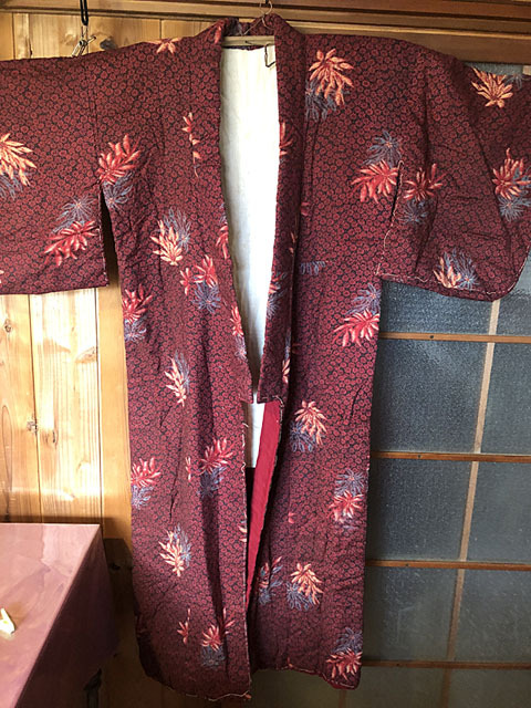 - ★丹前 赤系 綿入れ /女性★菊模様/綿★寝巻 寝具/着丈130cm・裄丈60cm