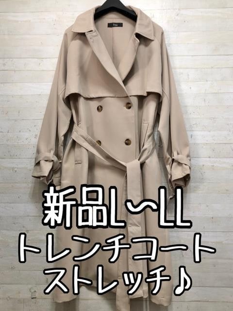 - 新品☆L~LLグレージュ系♪ストレッチなめらか素材♪トレンチコート〇B911