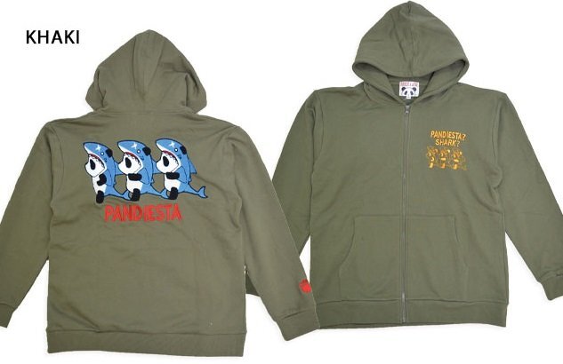 > パンダorシャーク??ジップパーカー◆PANDIESTA JAPAN カーキMサイズ 564564 パンディエスタジャパン 鮫 刺繍 ユニセックス