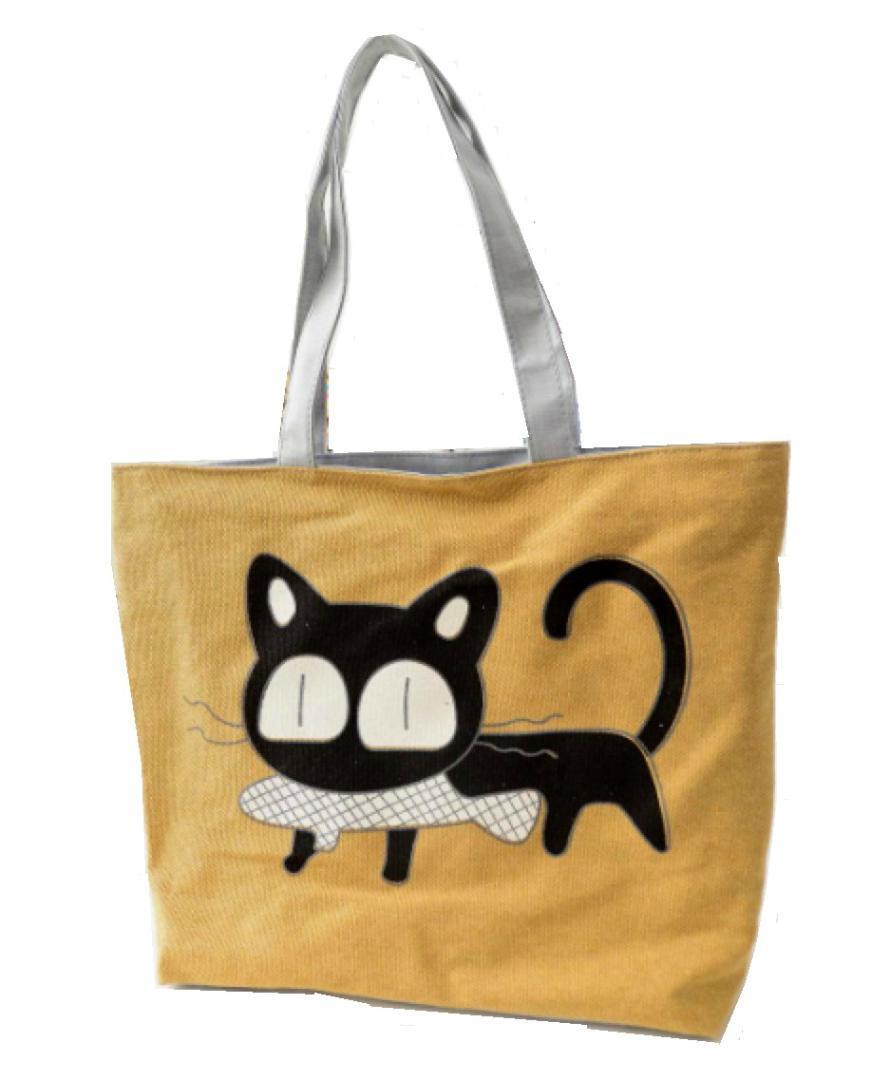 - お魚 と どら猫 トート バッグ カーキー カジュアル 帆布 ファスナー付き