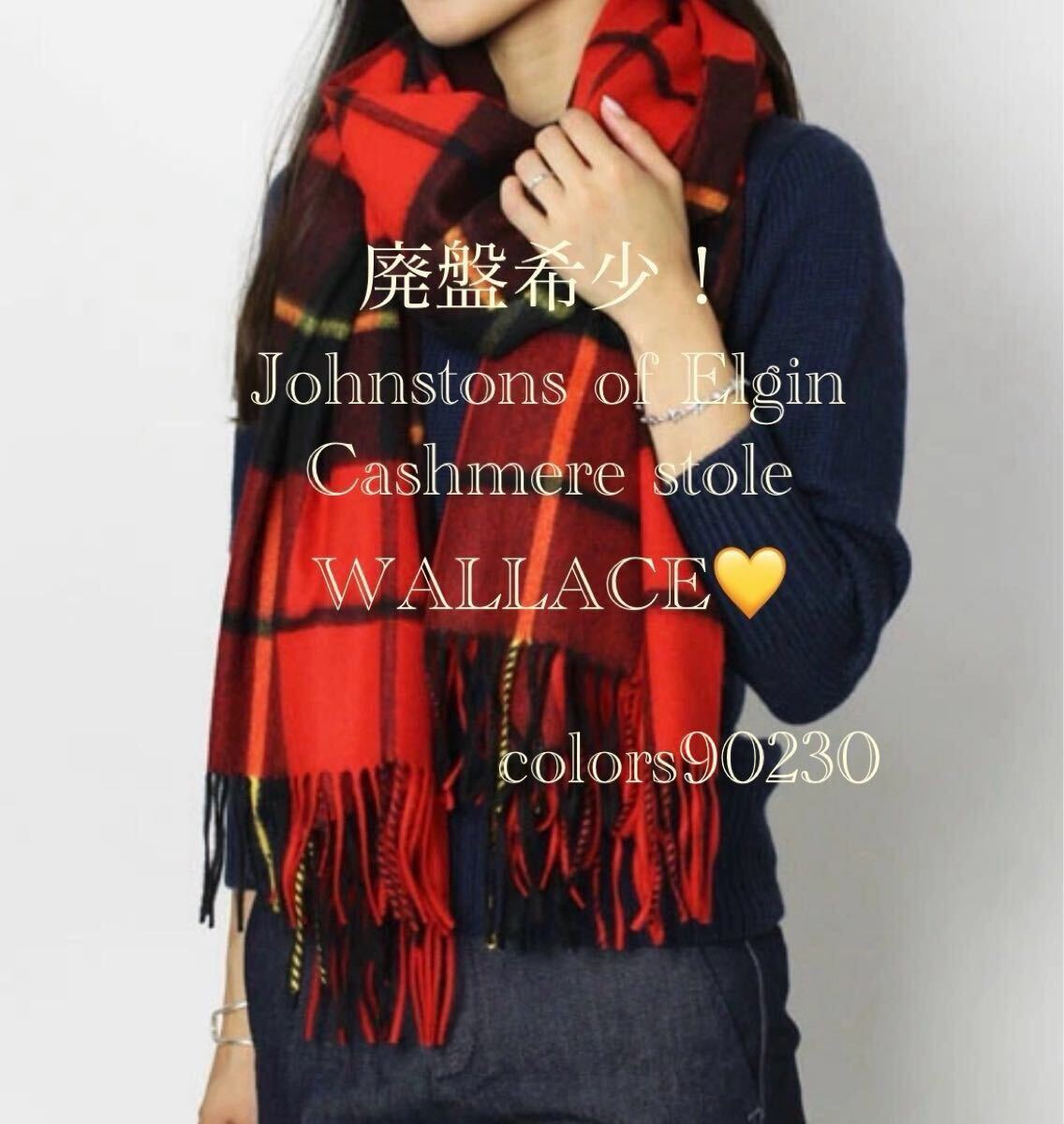 > 廃盤希少!日本別注☆未使用 ジョンストンズ カシミア ストール ウォレス レッド×ブラック×イエロー チェック 大判マフラー BAILA掲載品