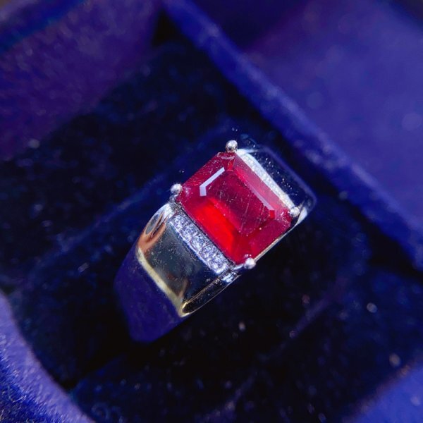 ナチュラルルビー男性用リング、6×8mm、925シルバー、デラックスジュエリー、18k金メッキ