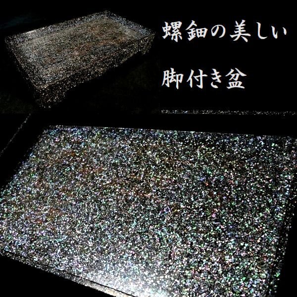 > 【 恵 #1478】 螺鈿細工の美しい脚付き盆 四角盆 全体に螺鈿の施された見栄え良き作品です 検:漆芸/煎茶/煎茶道具/茶道/茶道具/書道
