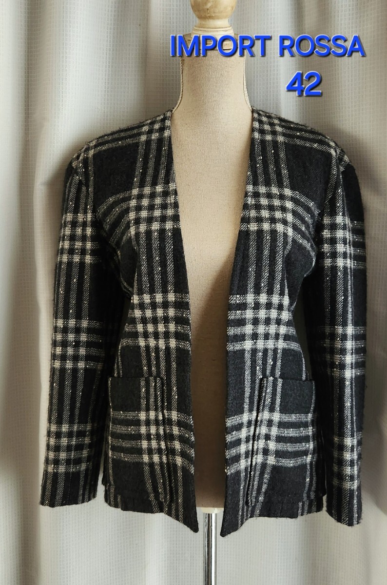 - 美品 IMPORT ROSSA チェック柄ウールジャケット ノーカラー グレー