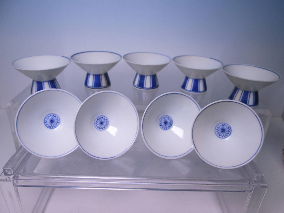 - ☆お料理屋さんの器 在銘 染付 酒杯 九客 箱無 酒器/酒盃/懐石/割烹/日本料理