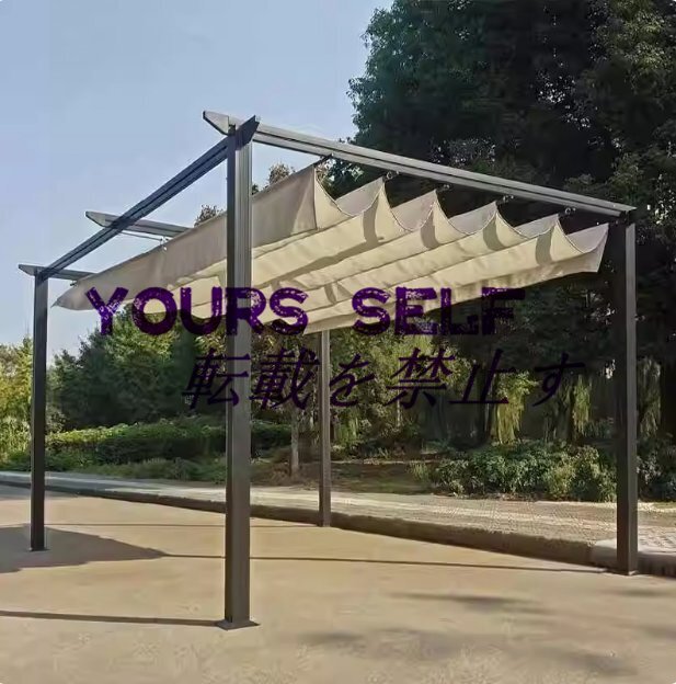 - 在庫わずか 高品質☆ シェード付パーゴラ ベージュ/テラス シェード 日除け オーニング ベージュ