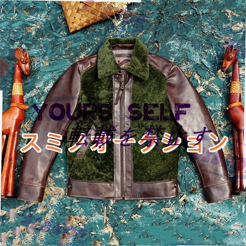 - ◆美品◆メンズ 革ジャン 最上級 牛革+ラムウール 切り替え レザージャケット 毛皮 ブルゾン オイルレザー 本革 S~5XL